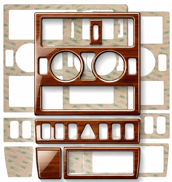 - Ogni kit è dotato di decori sagomati per ricoprire fedelmente parti come la cornice autoradio, le bocchette d’areazione, la maniglia del cassettino, la plancia, etc, etc (il numero di decori varia a seconda del cruscotto e del kit scelto).